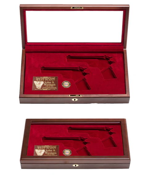 All cases are custom made to fit the 1976 Commemorative Class Pistols, and orders require 8-10 weeks of production time, in order to insure the personalized information is accurate and up to date. No pistol is included with any display case purchase.